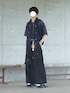 ネイビーのシャツを使ったモード系夏コーデ! ダークトーンでかっこよさを追求したスタイルです!😎