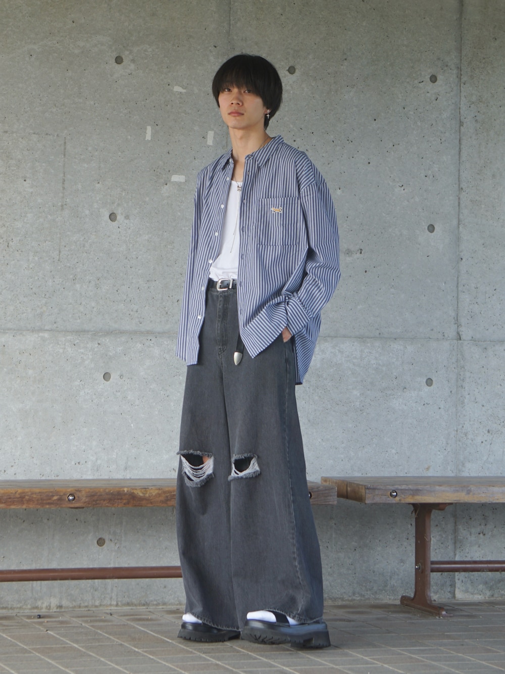MONO-MARTより新作シャツ✨ ストライプがおしゃれな秋スタイル! 大人っぽさのあるカジュアルめなコーデです🔥
