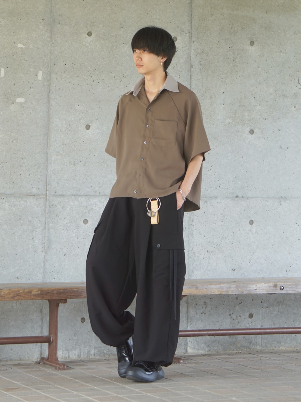 秋を意識して、ブラウン系のシャツを合わせたスタイル🍂 まだ暑さが残る中で、秋っぽさを出したい人におすすめなスタイルです!