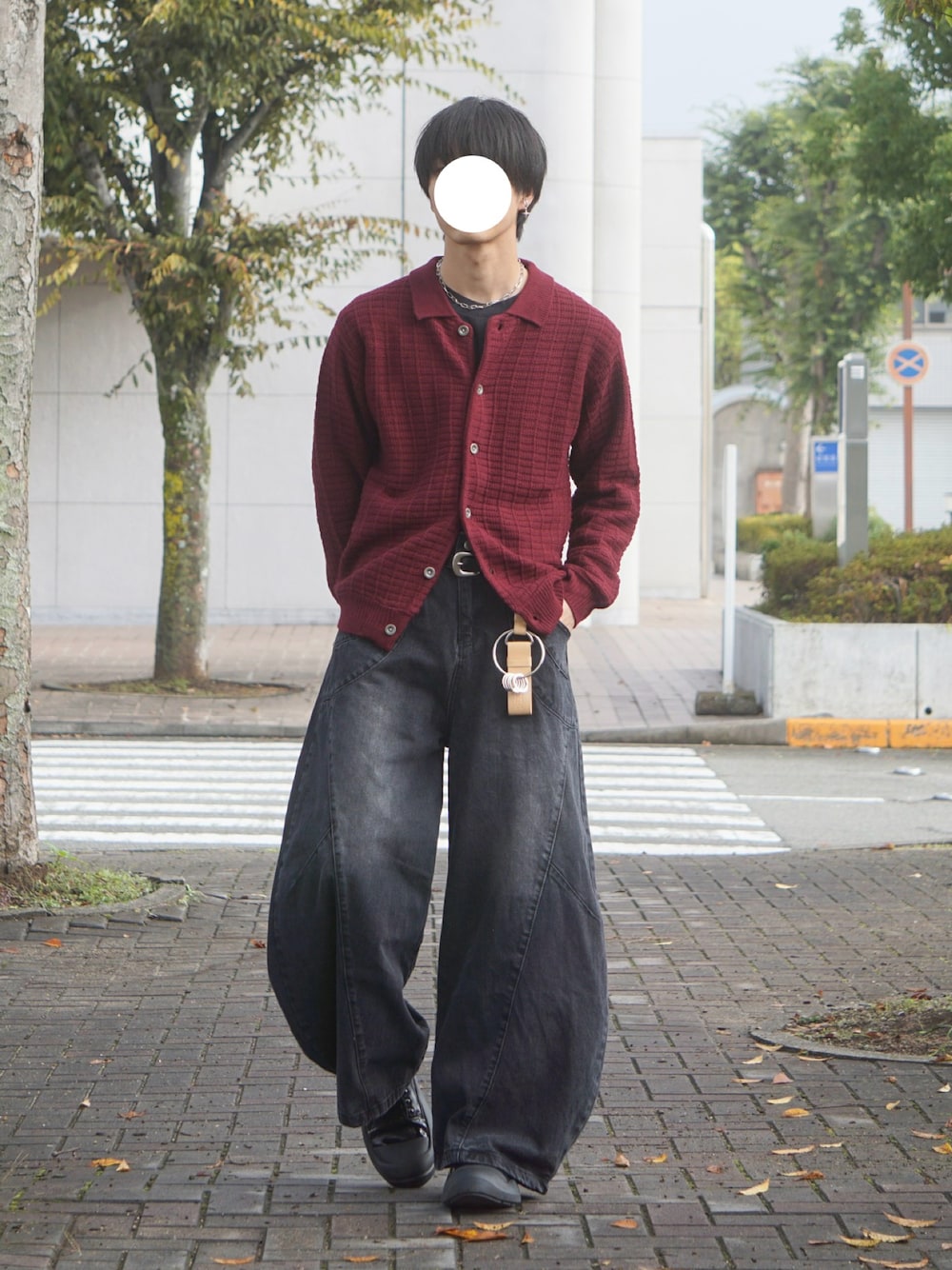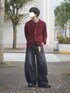 ニットカーディガンを使った秋コーデ! 秋らしく赤系の色味を使いました Aラインシルエットでおしゃ見え!
