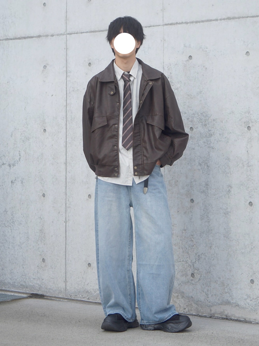 レザージャケットを使った大人スタイル ネクタイと合わせて、より大人っぽくヴィテージ感のある雰囲気に!👀