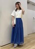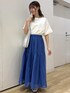 ホワイトのカットソーに、ブルーのスカートを合わせて華やかなコーデにしました! 明るめのブルーが鮮やかなので、Tシャツに合わせるだけでオシャレなコーディネートになりおすすめです◎ ※シューズは私物です。