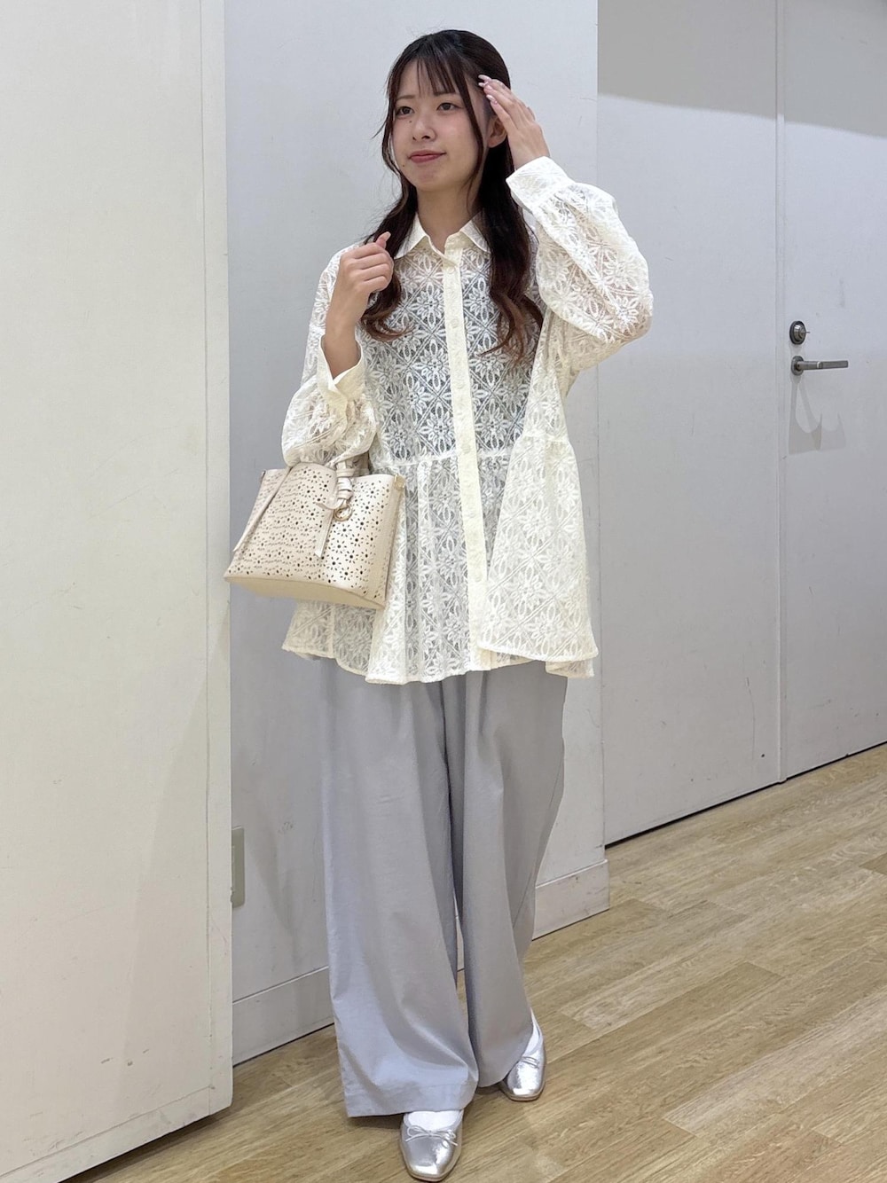 SAKI(ROPE' PICNIC 阪急西宮ガーデンズ)のショルダーバッグ「フルーレットパンチングレースミニショルダーバッグ/2WAY」を使ったコーディネート