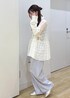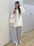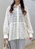 レースデザインのシャツにブルーのパンツを合わせてキレイめカジュアルなコーデにしました! シャツは1枚でオシャレなコーディネートになりおすすめです!