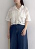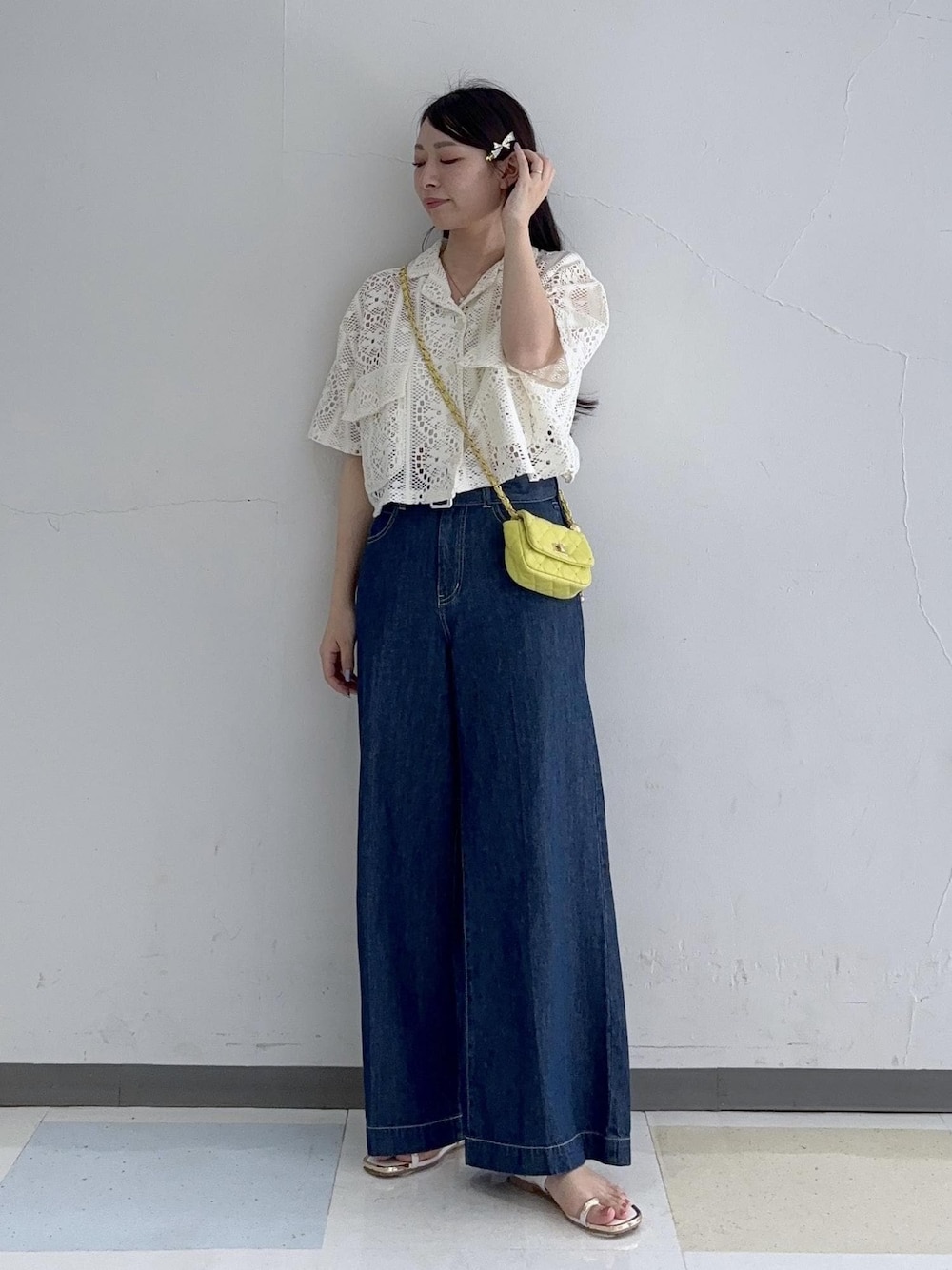 ヴィンテージライクで、透け感が夏らしいクロシェの開襟シャツカーディガン! フラットサンダルと、ミニショルダーでリラックス感のあるコーディネートにしました♪
