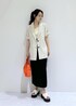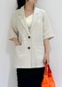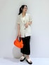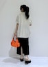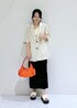大人気のリネンライクジャケットをカジュアルスタイルに♪ モノトーンでまとめて大人っぽく! ビッビッドカラーのオレンジをアクセントにしました☺︎︎︎︎