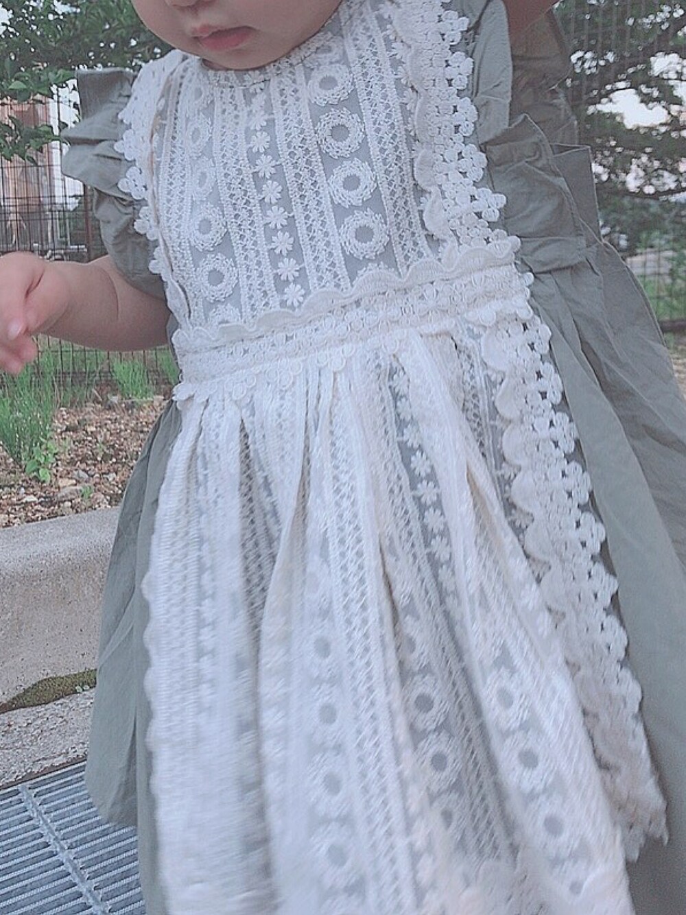 twinkle emilyさんのレースエプロン風ワンピース👗 Instagramで子供服サイト探してたら見つけたところ❤ 加工してあって色わかりずらいけどカーキーです❤ とてもかわいくてお気に入り~~~~