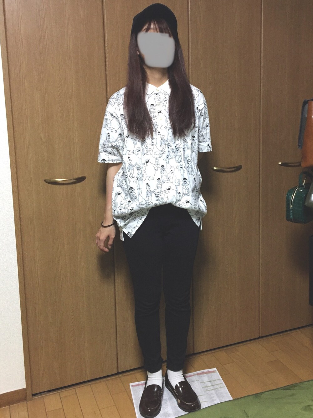 usagi67のポロシャツ「コラボレーションポロシャツ/ラインアートパターン(セサミストリート)(ホワイト)」を使ったコーディネート