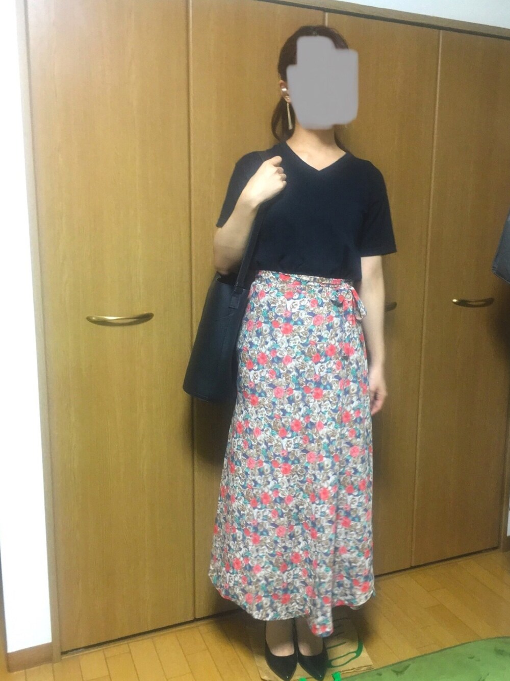 初めての、ラップスカートというものを。 柄がとにかく好きで購入しました。しかしラップスカートというのは「ウエストが細い」「脚が細い」が揃ってないと、着るの難しいですね笑 これをいい感じに着るにはもう少し痩せる必要がありそう。 トップスと靴を女子らしいものにすると私的に甘くなりすぎたので、黒Tにしてみました。