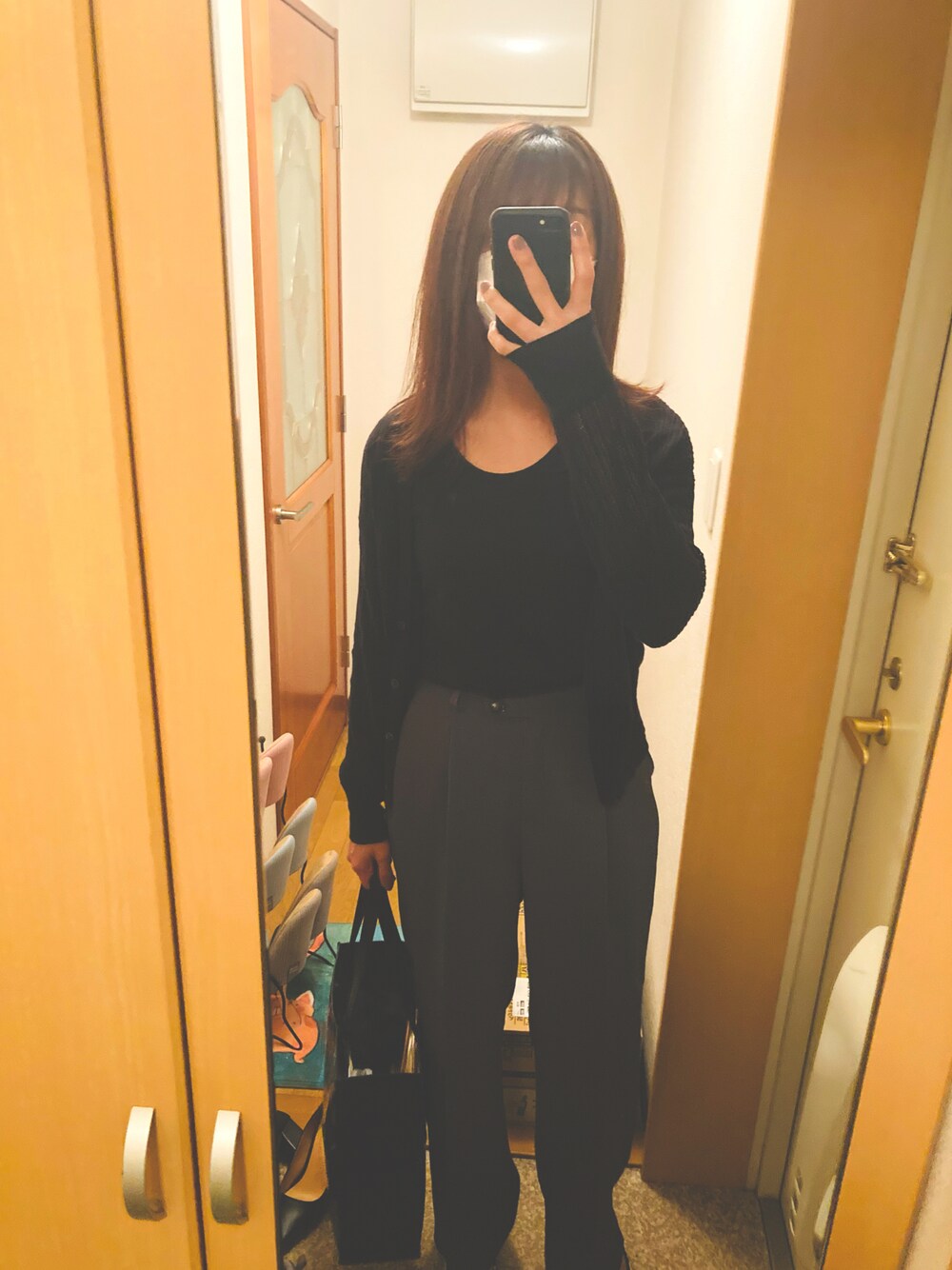 今日の出勤服(全然見えないver.) 今日はかっこつけたい気分たったので黒グレーでクールコーデです。 靴はZARAの白黒トガリパンプス