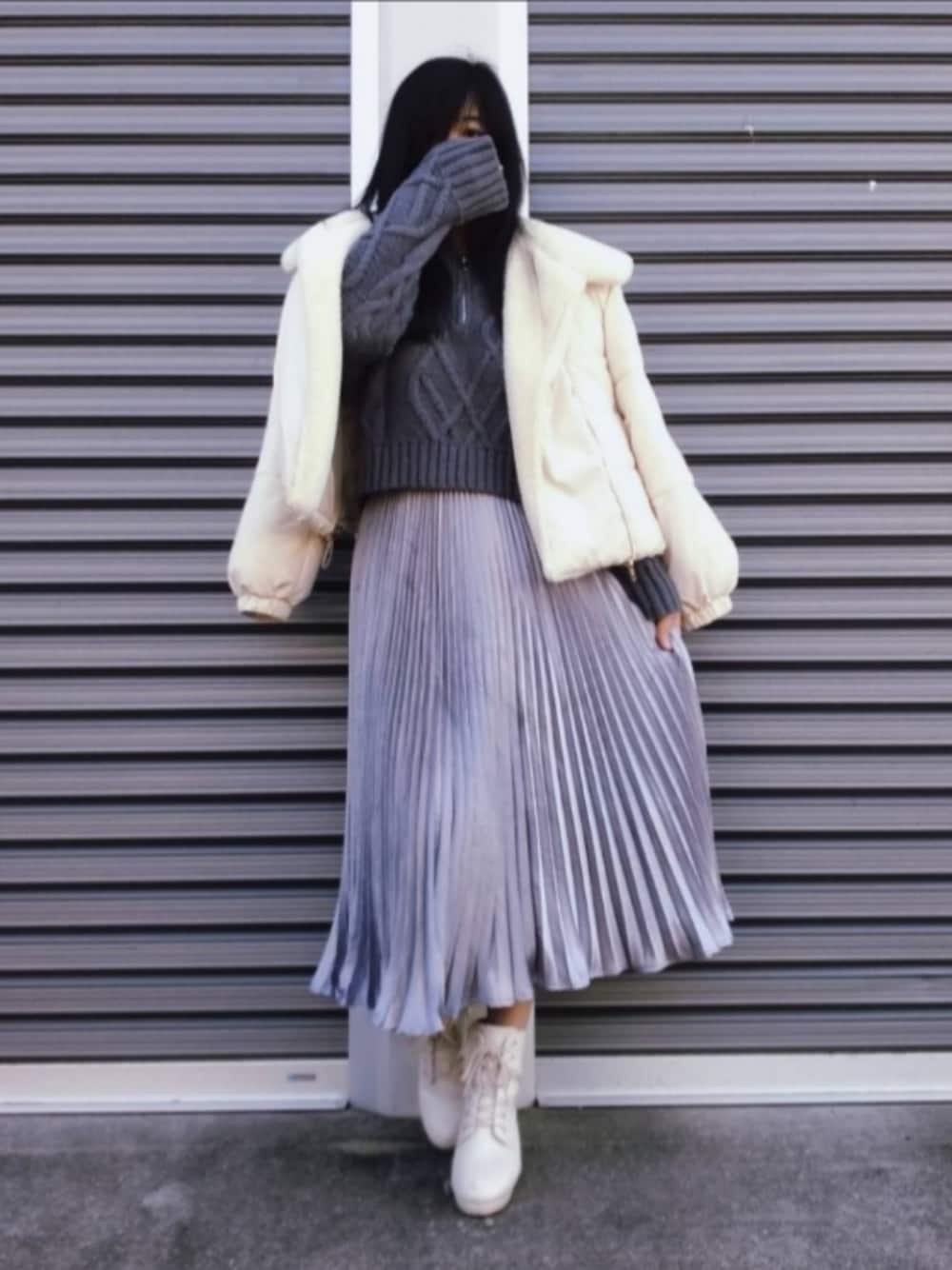 美月のブーツ「レースアップレディブーツ」を使ったコーディネート