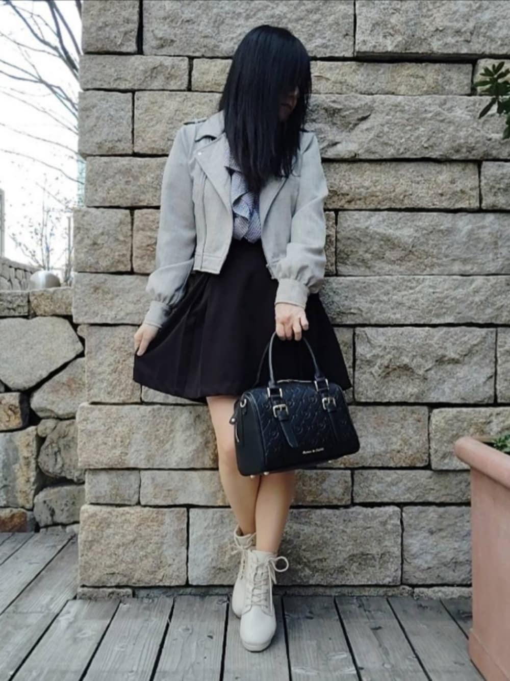 美月のブーツ「レースアップレディブーツ」を使ったコーディネート