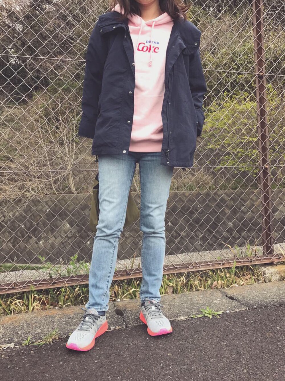 桜を見がてら近所の動物園へ。 桜に合わせて...ってわけじゃないけど、例のやばいピンクのパーカー着てみた。 上着着てるとそんなに気にならないな。 駐車場のはしっこで撮ってたんだけど、あまりに背景があれだったので、桜の下に移動したw