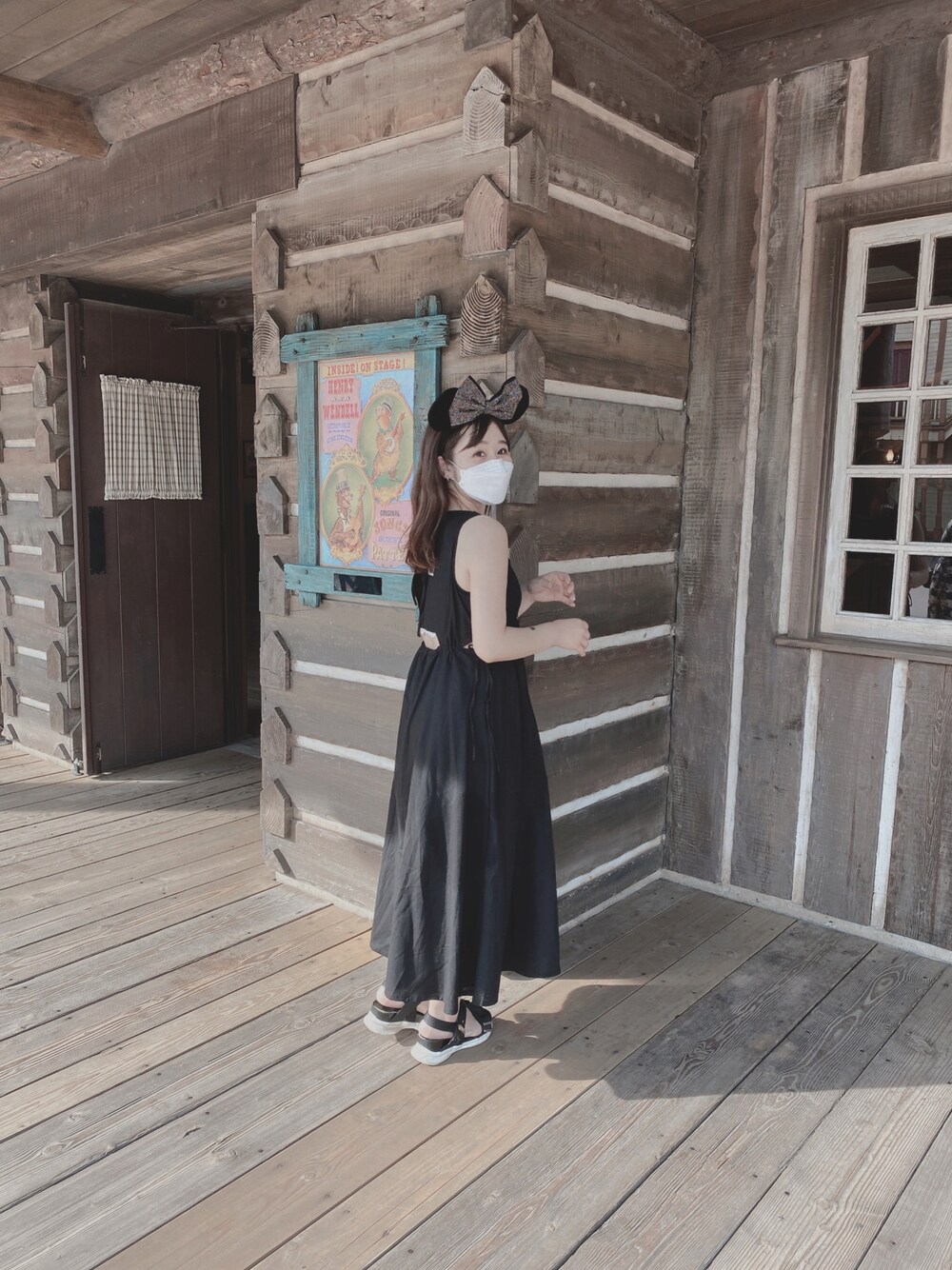 ブラック系のワンピース/ドレスを着用したレディースの秋コーディネートの1枚目の写真