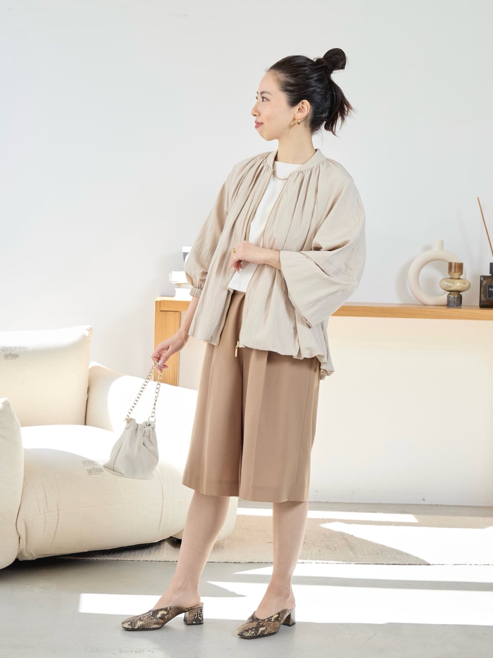 たっぷりギャザーが施されたのバルーンシルエットのブルゾン! ショートパンツと合わせることで バランスよく着こなせます! ------------------------------------------ usa Instagram @usa_md.76 低身長でも楽しめるコーデなどを配信しています♡ ------------------------------------------