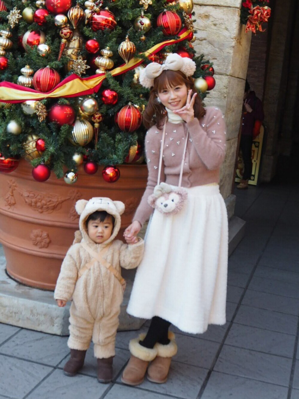 このあいだのディズニー🐭 親子でダッフィーとシェリーメイ風🙈💕 モコモコスカートちょうど良かった😁✨