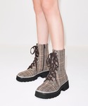 うさみあやのブーツ「【販売終了】チェーントリム レースアップアンクルブーツ」を使ったコーディネート