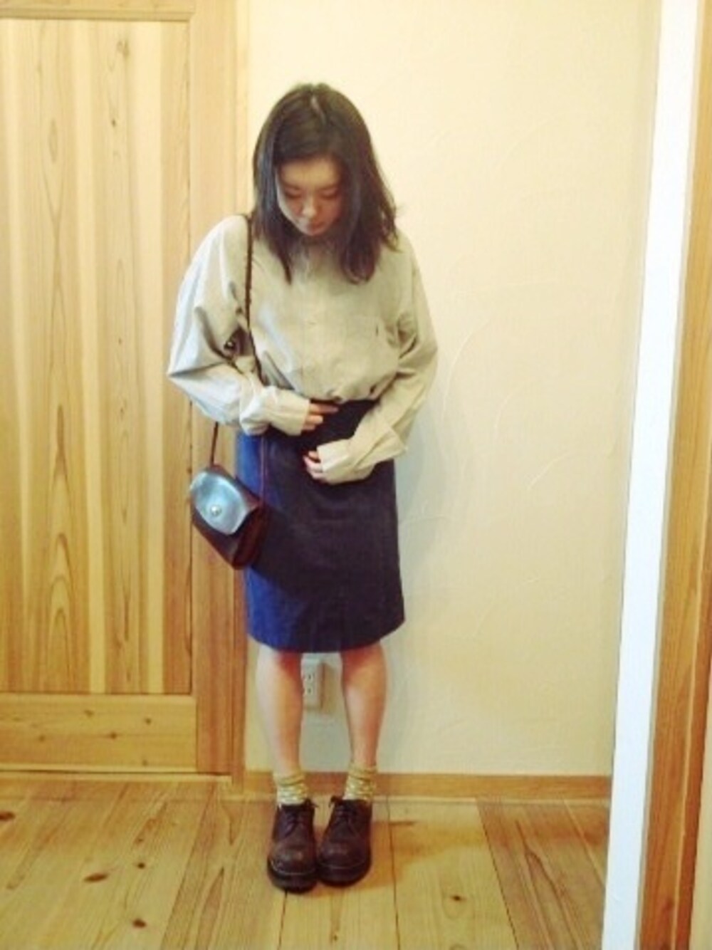 髪、ぼさぼさですが。 シャツ:Ralph Laurent スカート:celine 靴:Dr.martens バッグ:old coach