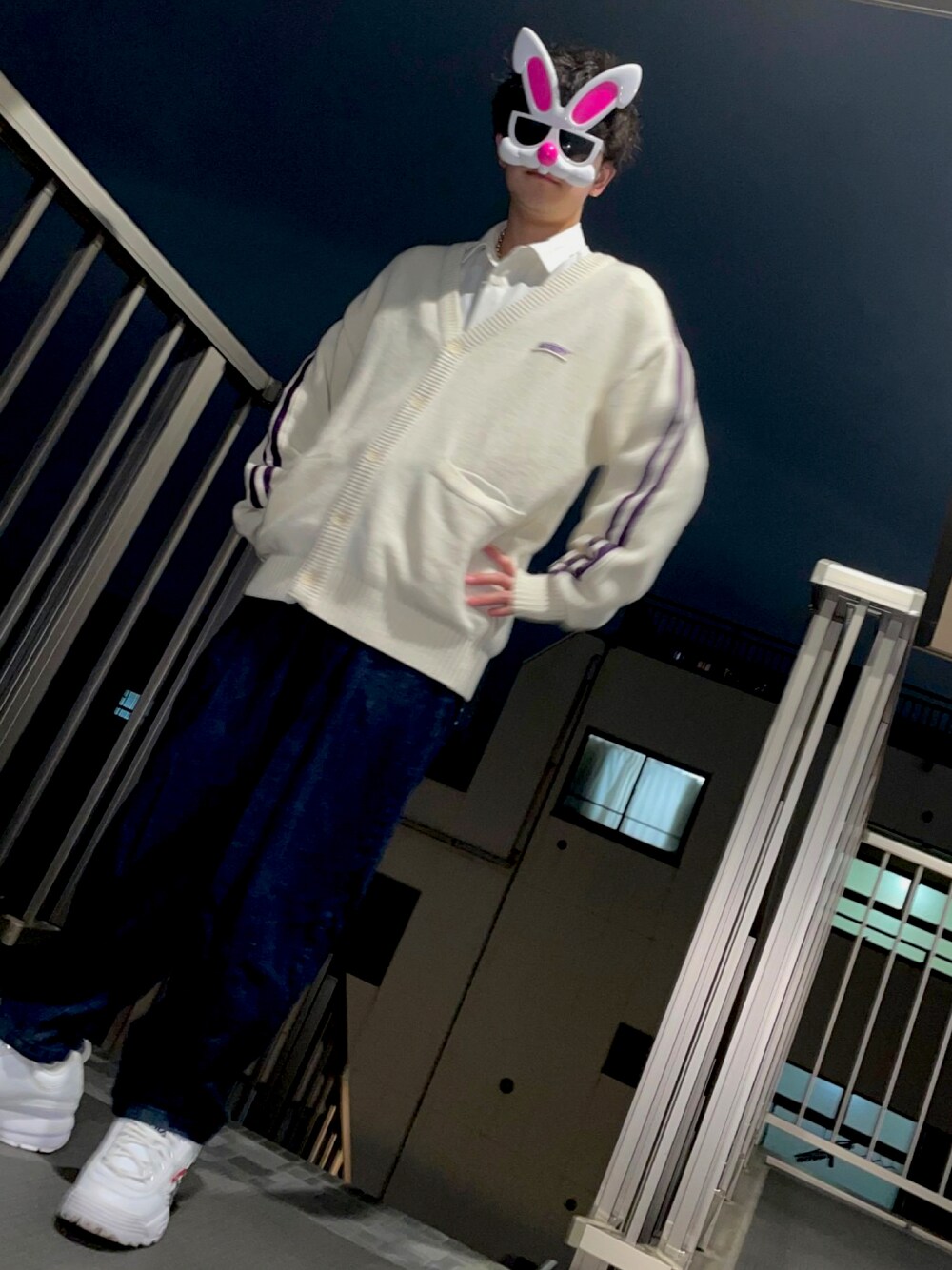 今回は韓国で大人気「NERDY」 ちょっと大きめのカーディガンにはダボっとしたパンツがめちゃくちゃ合う! シャツの襟元から見える首輪ネックレスもいい感じ✨ ------------------------------------ 【うさぎの登り坂】 うさぎの洋服たちを紹介していきます👕👚