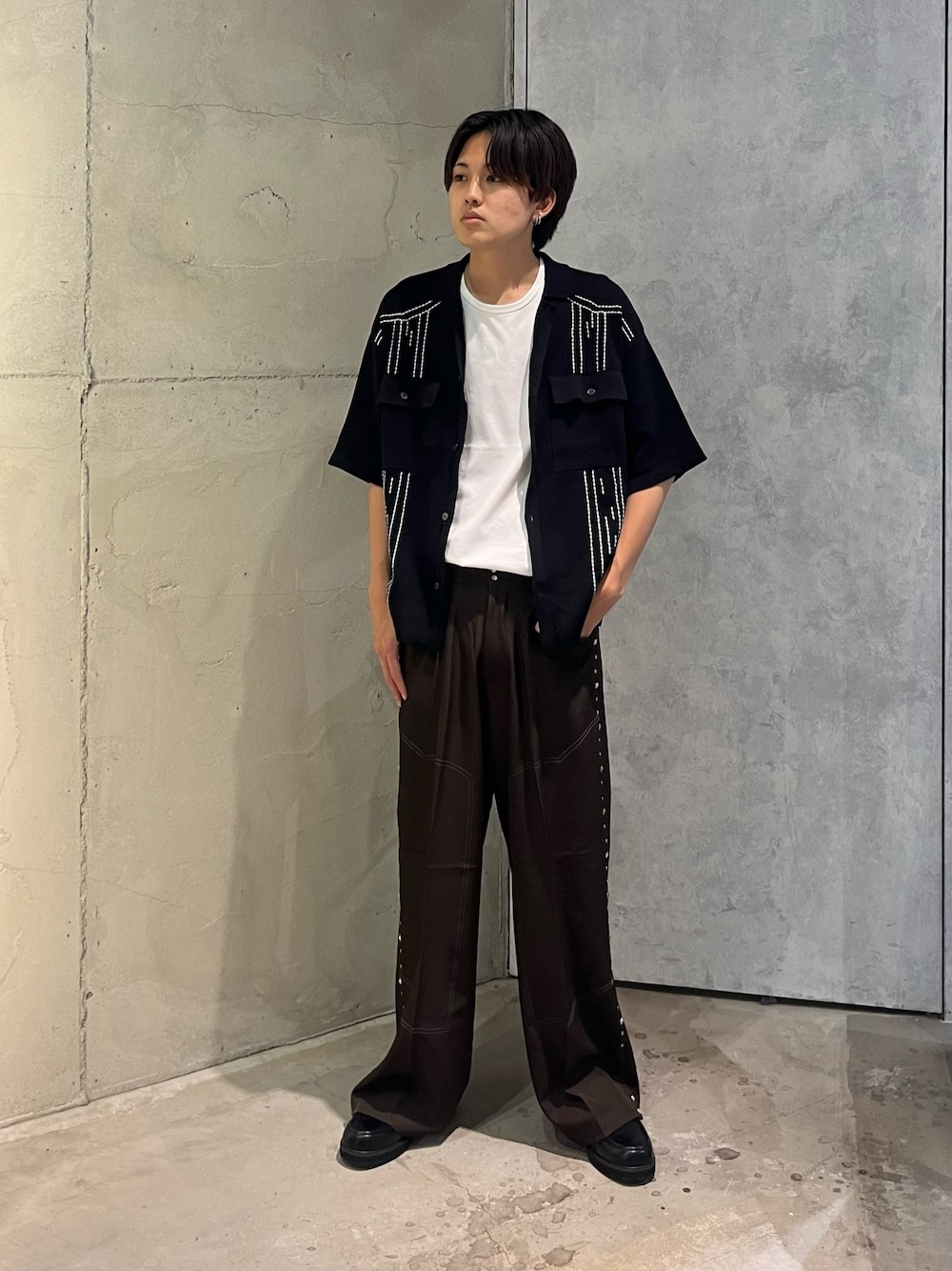 ウェスタンポロカーディガン×スタッズスラックス 夏に合うウェスタンコーデです ローファーで合わせることにより格好良く スタイリッシュに決めていただけます