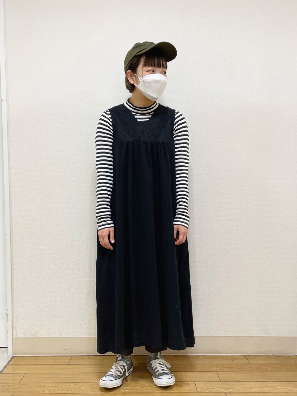 ご覧頂きありがとうございます🐰 ガーリーなレースワンピですが、ボーダーのカットソーを入れてカジュアルにしてみました!