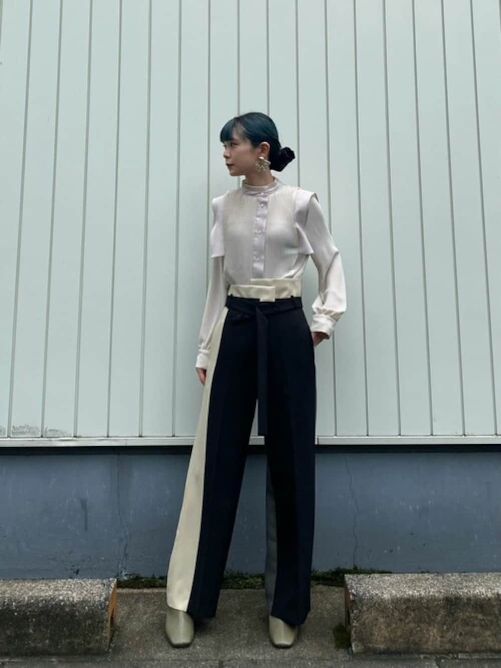 usaのシャツ/ブラウス「ハイネックプリーツブラウス」を使ったコーディネート