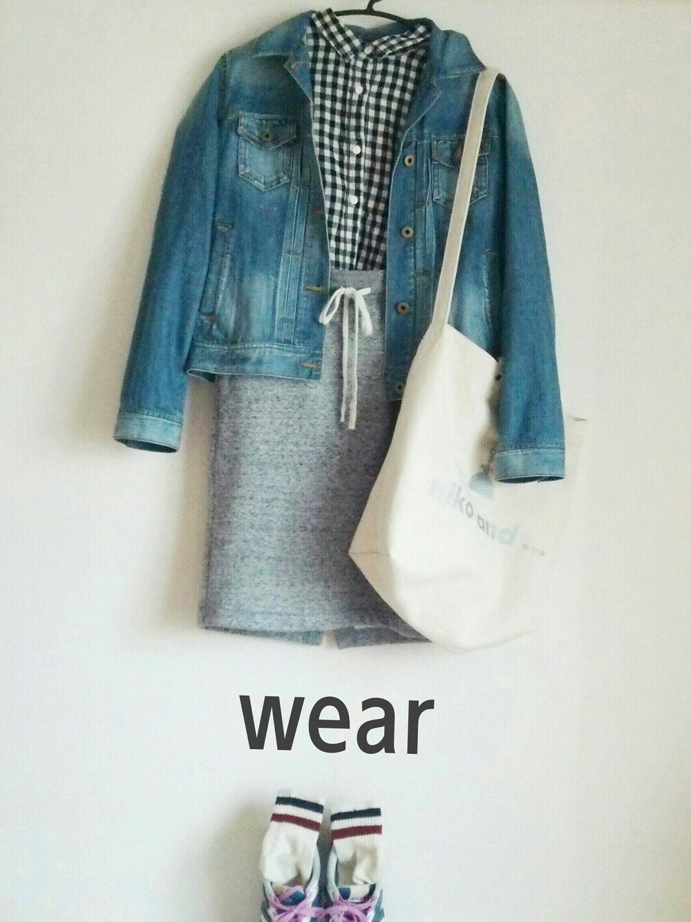 デニムジャケット ローリーズファーム ギンガムチェック studio CLIP タイトスカート UNIQLO トートバック niko and スニーカー ニューバランス 靴下 ???? でした。 最近、UNIQLOで買った タイトスカート裏地がモコモコ で暖かくていい感じです(^^)d いっぱい履こう~♪
