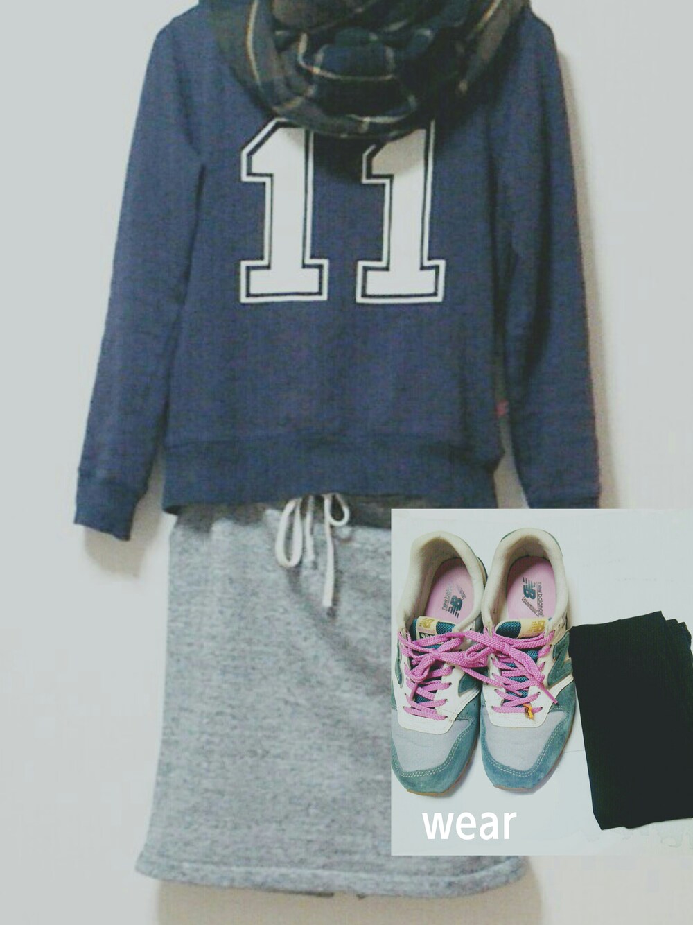 スエットコーデです\(^o^)/ スポーツ系女子??をめざし UNIQLOのタイトスカートに黒の タイツにニューバランスを 履いてみました!!! 今日も宿題がたまってる泣 ほなっ頑張ろ(  ̄▽ ̄)