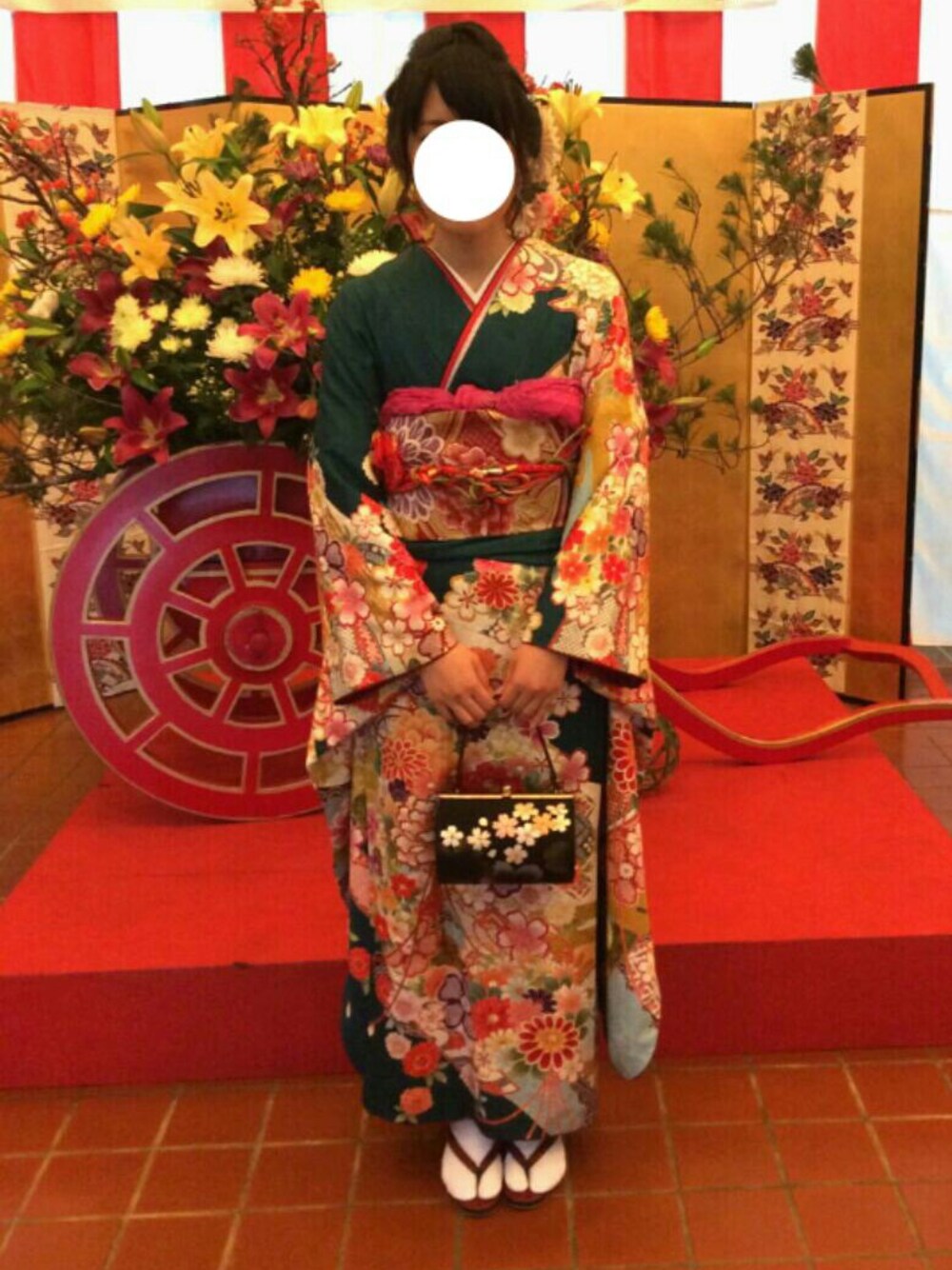 無事、成人式を 向かえることができました(^^) この振袖は一目惚れで 選びました! 深緑に花がとてもマッチ していて着れて良かったです! 親に感謝!!!!