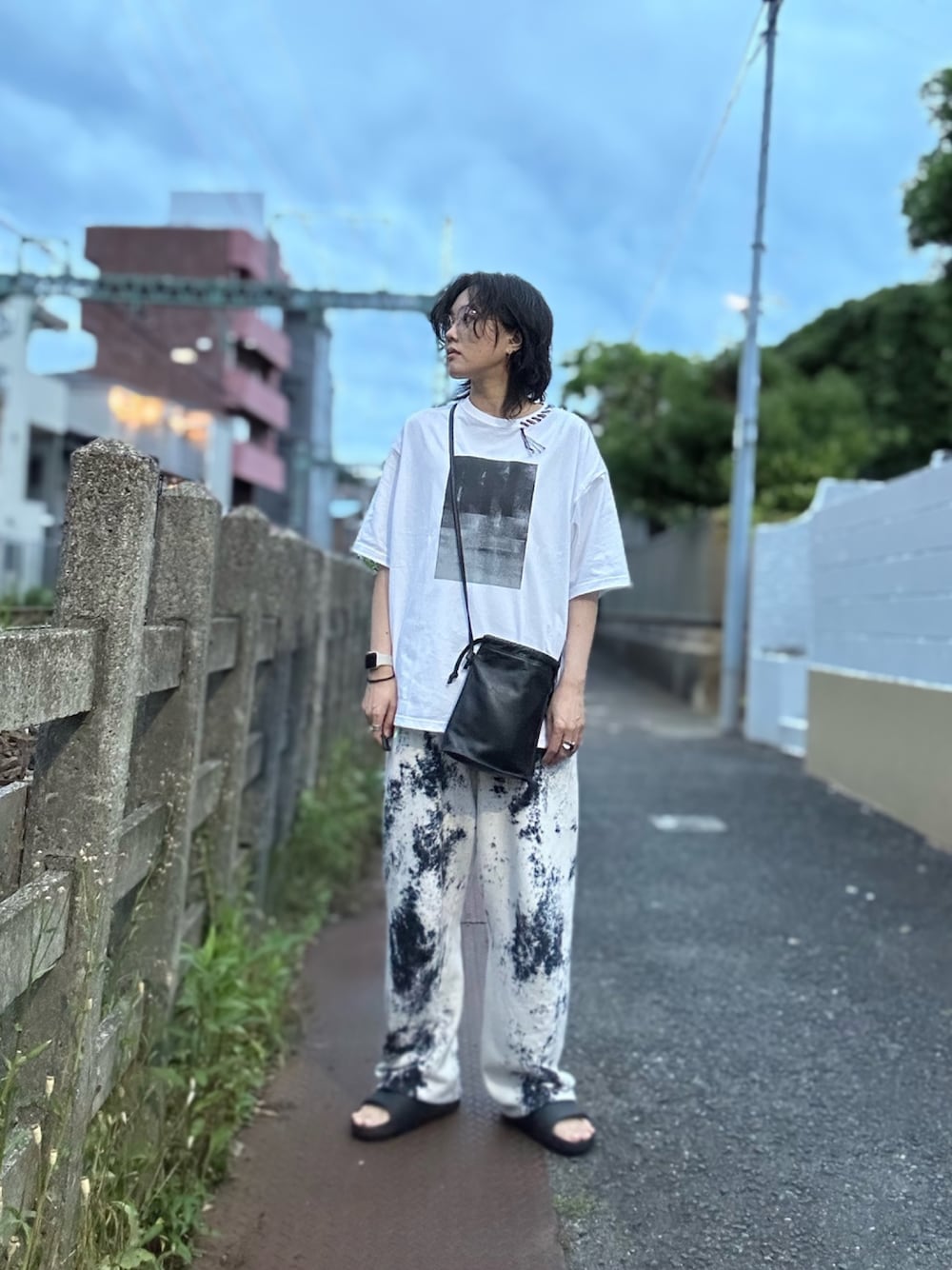 活動時間15:00~19:00、最高気温25℃(活動時間)くらいのコーデ。 昼は長時間外にいると汗ばむ、 夜はまだ薄い素材の長袖を着てもいいけど、Tシャツでも寒くはない、というくらいになってきましたね。 お気に入りのTシャツを毎年数枚購入するのがここ最近のルーティンになってます。 このTシャツも首の部分のデザインとかおされ。