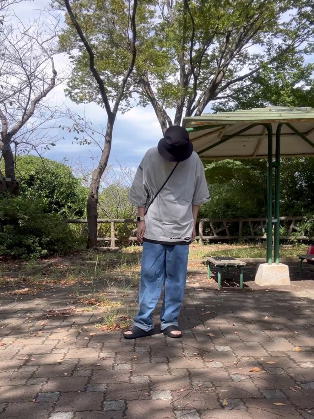 活動時間11:00~18:00、最高気温30℃(活動時間)くらいのコーデ。 全然暑いんだけど少しでも秋感出したくてデニムにしてみたけどあんま意味ない自己満足