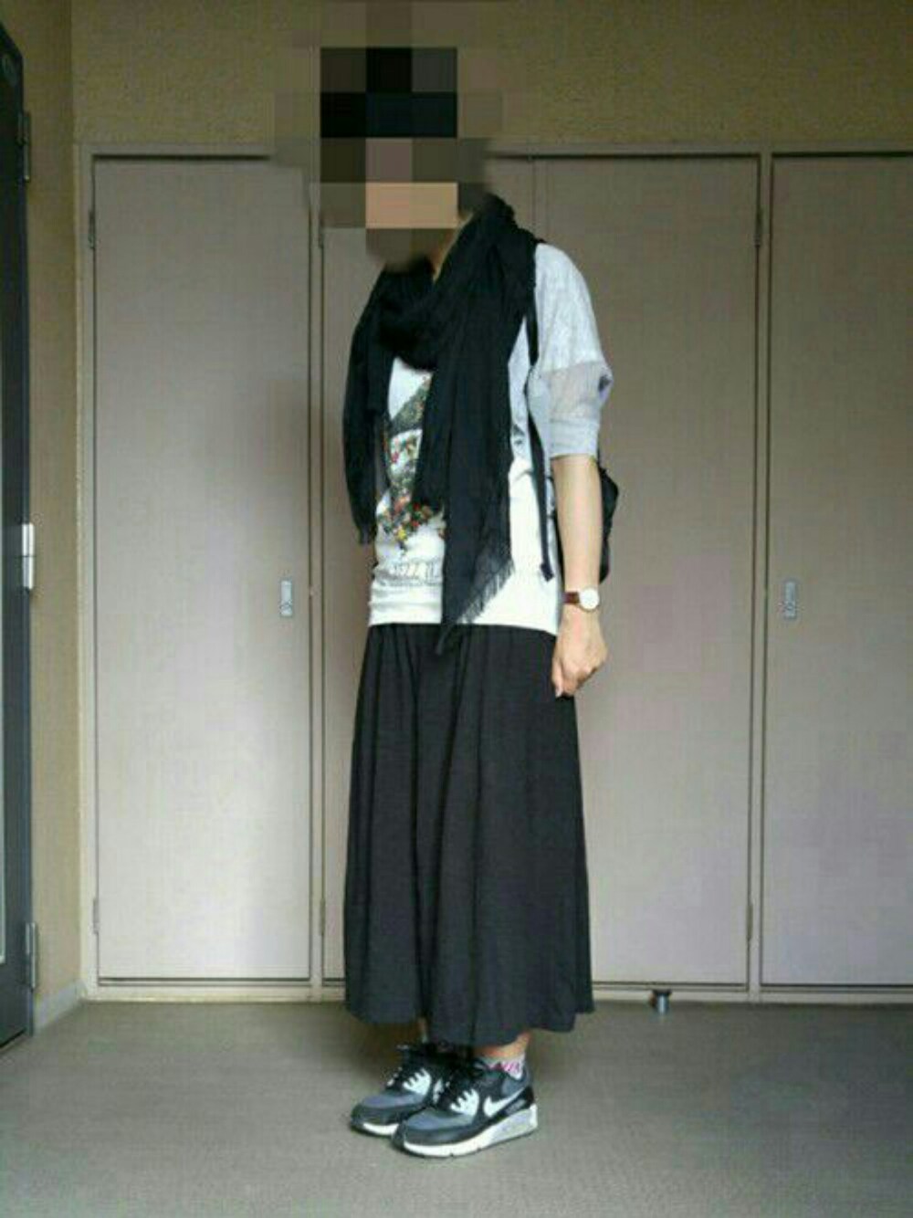 ユーザー弐号機のスニーカー「NIKE ナイキ W AIR MAX 90 ULTRA ESSENTIAL ウィメンズ エア マックス 90 ウルトラ エッセンシャル W724981 007BK/BK DGRY」を使ったコーディネート
