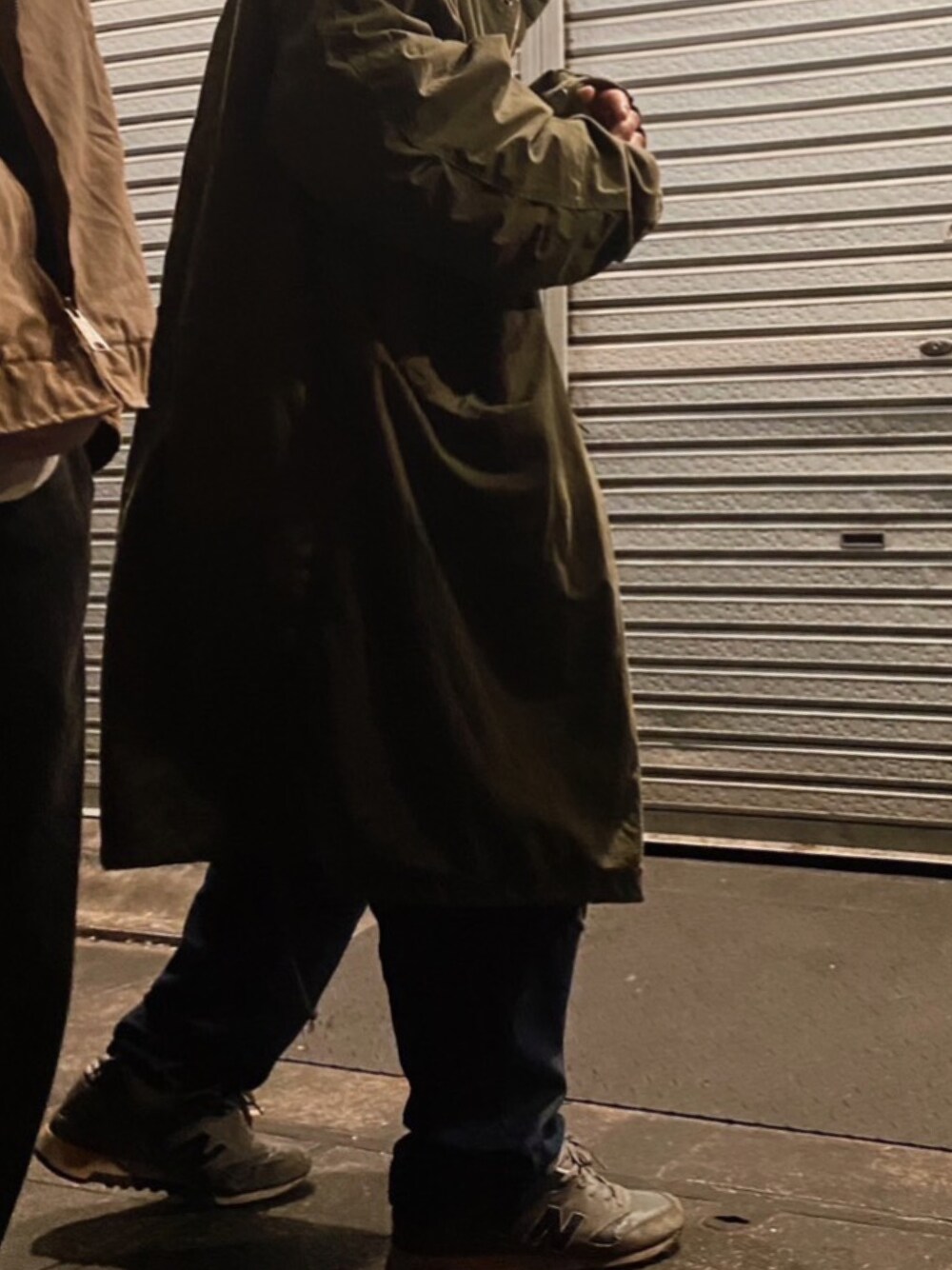 モッズコートxデニムパンツ ビーニー被ってます。グレー。 ビーニーの色(グレー)とデニムパンツの色を合わせて、Newbalance577。