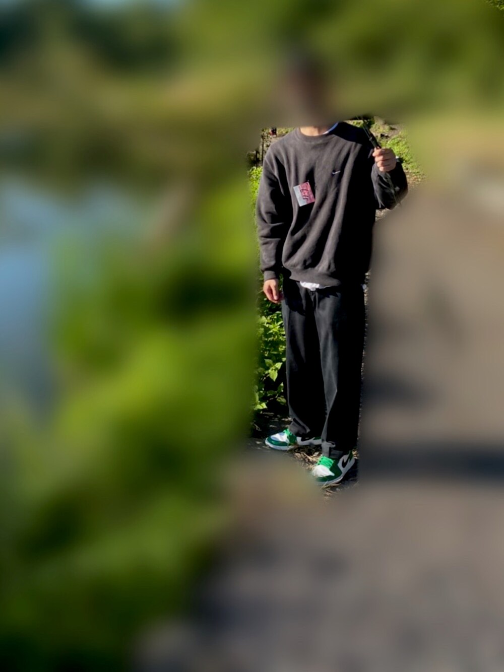 以前に釣りをした時の格好です。 Nikeのスウェットは、古着で購入したものです。