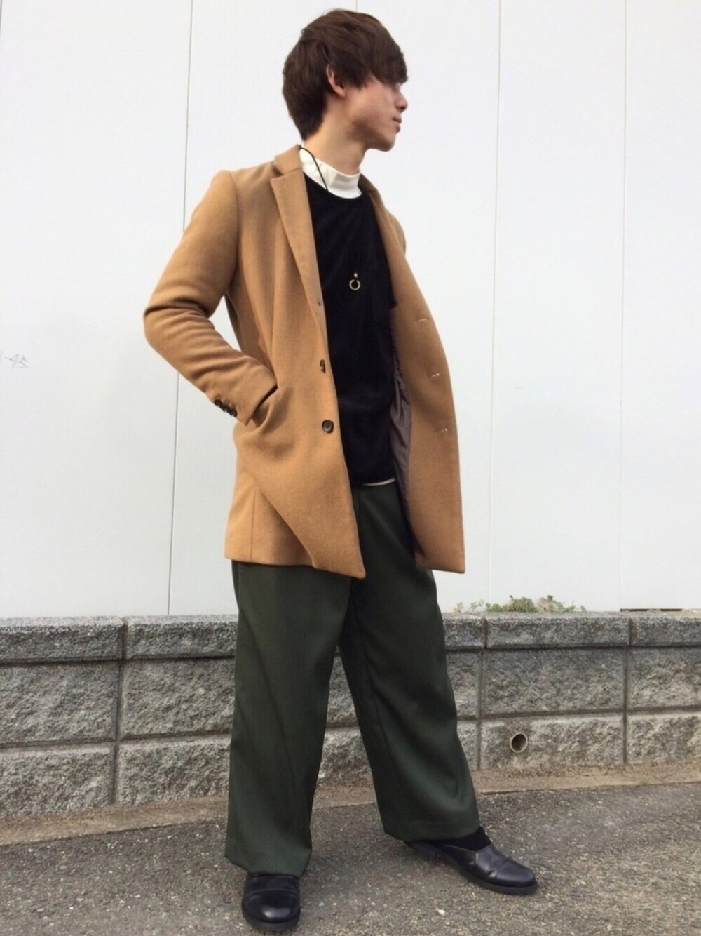 年始にUNIQLOで安売りしてたヒートテック大量買いしちゃったんだけど、普段極暖の方着てるからちょっと物足りない感ある…寒か… 超極暖のはまだ着たことないんだけど、どんくらい暖かいんだろ??🤔 ◾️coordinate◾️ 王道チェスターコートを使ったシンプルコーデ!💁♂️ 中はハイネックにベロアシャツを合わせて温かみある感じに☺️ パンツは前回と同じグリーンカラーのワイドパンツを合わせてHラインに!👀 全体的にきれいめだから、カラーとシルエットで気持ちきれいめカジュアル寄りに✨✨ そして編集するまで気付かなかったけど、ネックレスの紐がハイネックに引っかかってるという…失敗した(笑) 大目に見てください(笑)