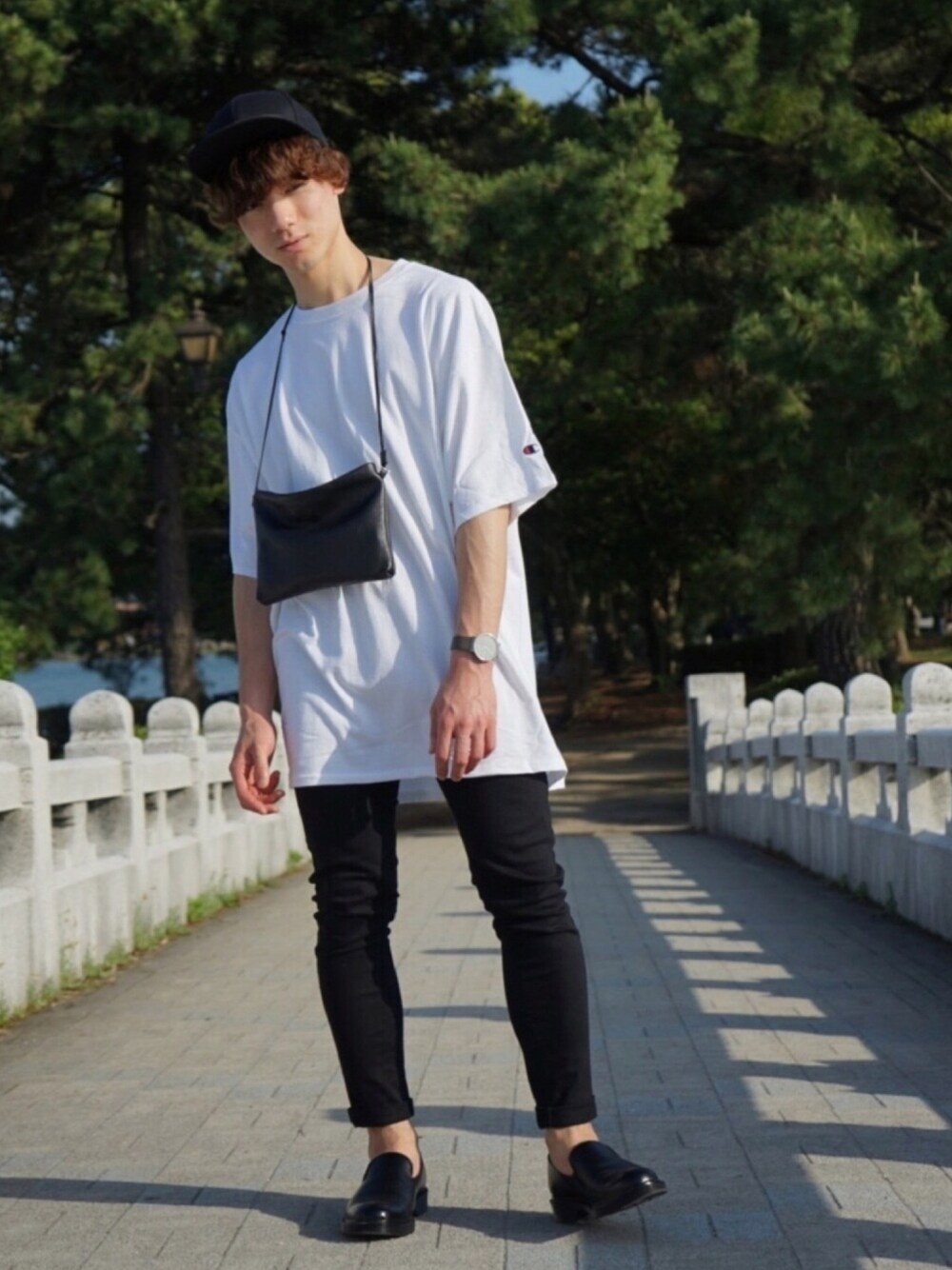◾️coordinate◾️ シンプルラフコーデ💁♂️ オーバーサイズのTシャツを探してたら、このChampionのビッグTを着ている方を見てビビッときて即購入しました😆笑 ビッグTの存在感を活かすために他は極力シンプルに! ちょいきれいめアイテム取り入れてきれいめカジュアル寄りに🕺 Championだから全体的にカジュアルにした方が合ってるかもだけど🙄 てか暑い!もう夏って感じ!😓 でも朝と昼で温度差あったりちょっと肌寒い日もあったりするから着る服に結構悩む🤔💭 こういう中途半端な季節ってほんと困るわー… もうすぐ梅雨だし今のうちに色々着ときたいんだけどね🙁