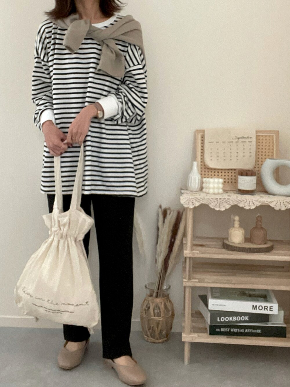 うしのTシャツ/カットソー「【お気に入り数11万人突破!】ゆったり体型カバー!ボーダー&無地オーバーサイズプルオーバー」を使ったコーディネート