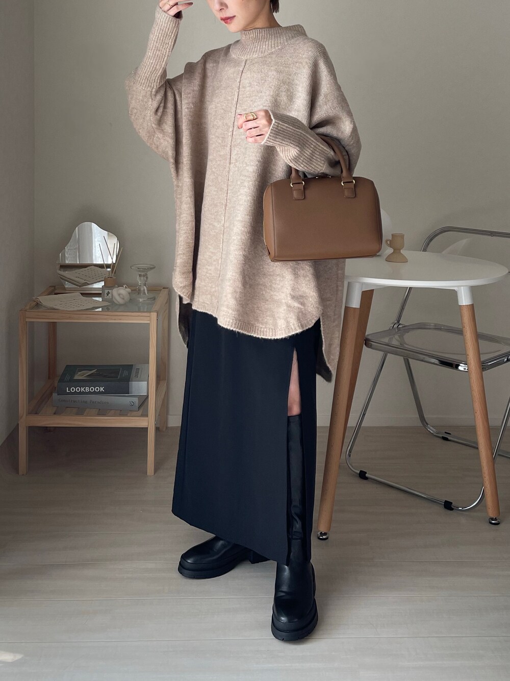 recaのニットは一枚で主役に🧶暖かくて肌触りも◎ 着丈が長めなので体型カバー効果もあります。 私は骨格ウェーブなのでボトムスをスリット入りのスカートにして抜け感を足してみました。 骨格ウェーブの人が着丈の長いトップスを着る時はボトムスで抜け感を出すとバランスがとれると思っています🤔 こちらのニットは現在お得なタイムセール中です⏰ 見てくださりありがとうございました🙇♀️