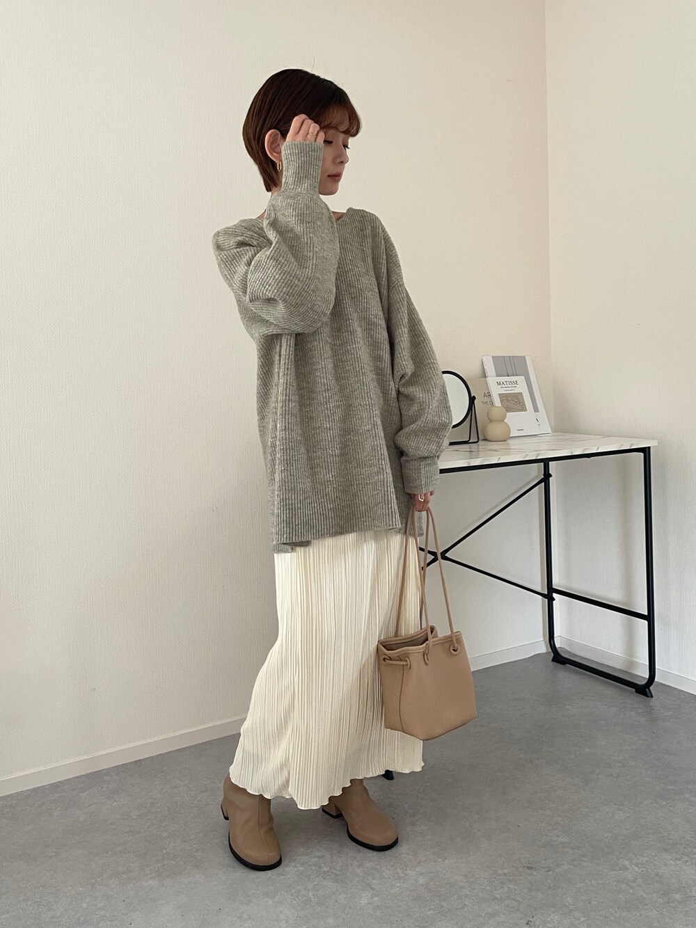 くすみグリーンのニットを使ったゆるコーデ 靴とバッグはベージュ系で統一しました。 ベージュのブーツは持っていると思いの外使いやすかったです😉 ブーツはどんなコーデにもあわせやすくてたくさん着回しています❤️ ヒールが太いので安定感があって歩きやすいです😉 こちらのブーツは ZOZOTOWN【welleg from outletshoes】にて 通常価格5,199円→SALE価格4,670円 11/13 23:59までセール実施中 更に ZOZOTOWN【welleg from outletshoes】にて 11/13(日)500円クーポン対象店舗 良かった覗いてみてください😌 見てくださりありがとうございました🙇♀️