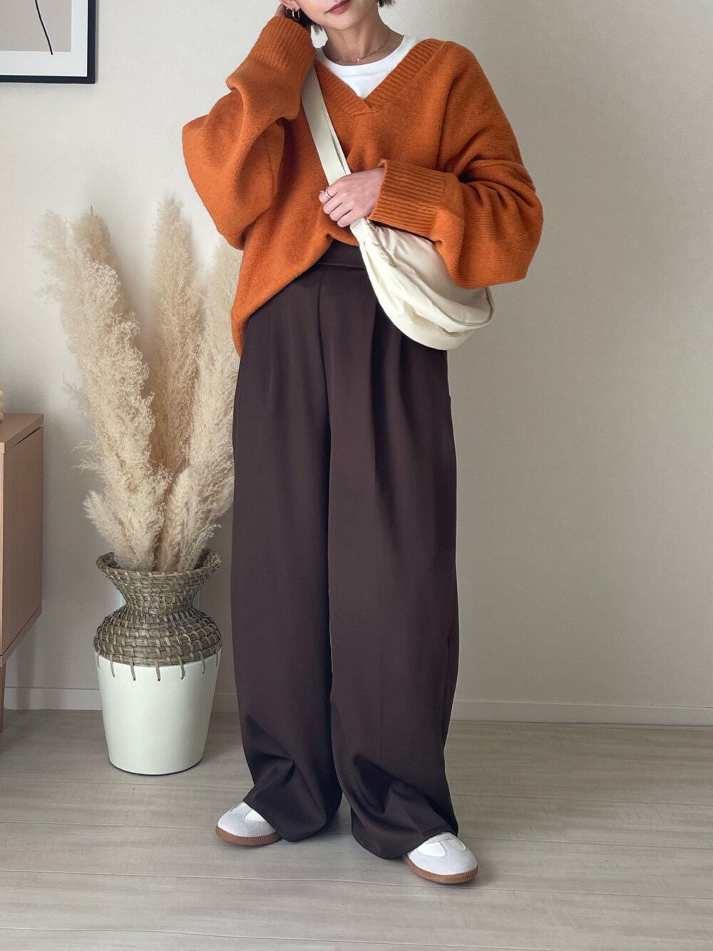 うしのニット/セーター「オーバーサイズ 深Vネックニットプルオーバー」を使ったコーディネート