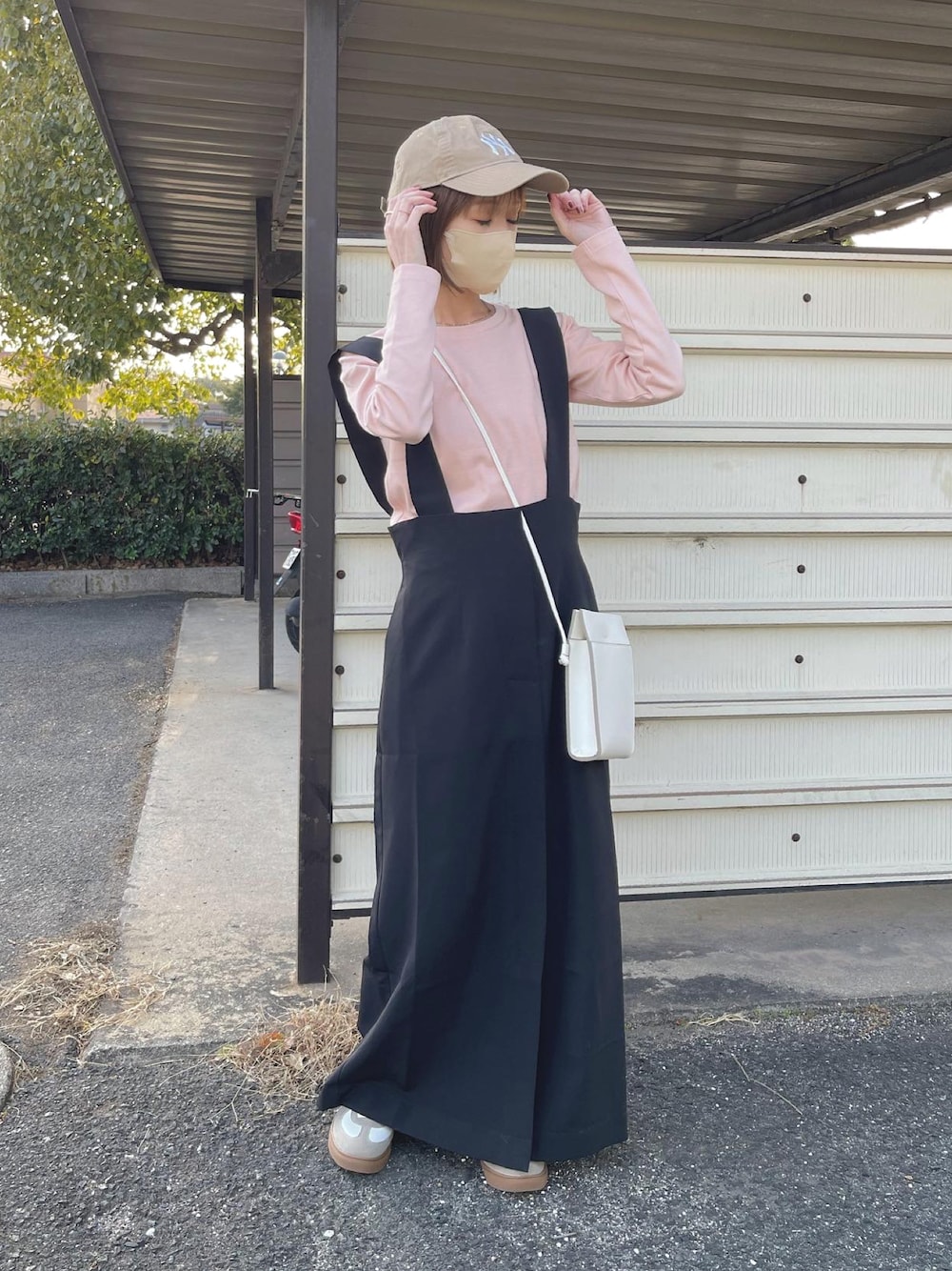 大人なジャンスカにピンクあわせ🌸 オールシーズン着回せる素材です♪まだ寒いけど春先にはこんな風に着たいと思ってます🌷 ダブルクロスジャンスカはタイトなシルエットが大人っぽく、ハイウエストデザインなので脚長効果があります✨ 長さは調節可能で、私(150cm)は1番短くして着ています。 手持ちのUNIQLOのアイテムとも相性が良くてコーデも組みやすかったです🥰 こちらジャンパースカートは現在zozotownにて1000円OFFクーポン出てます😉