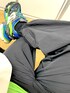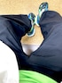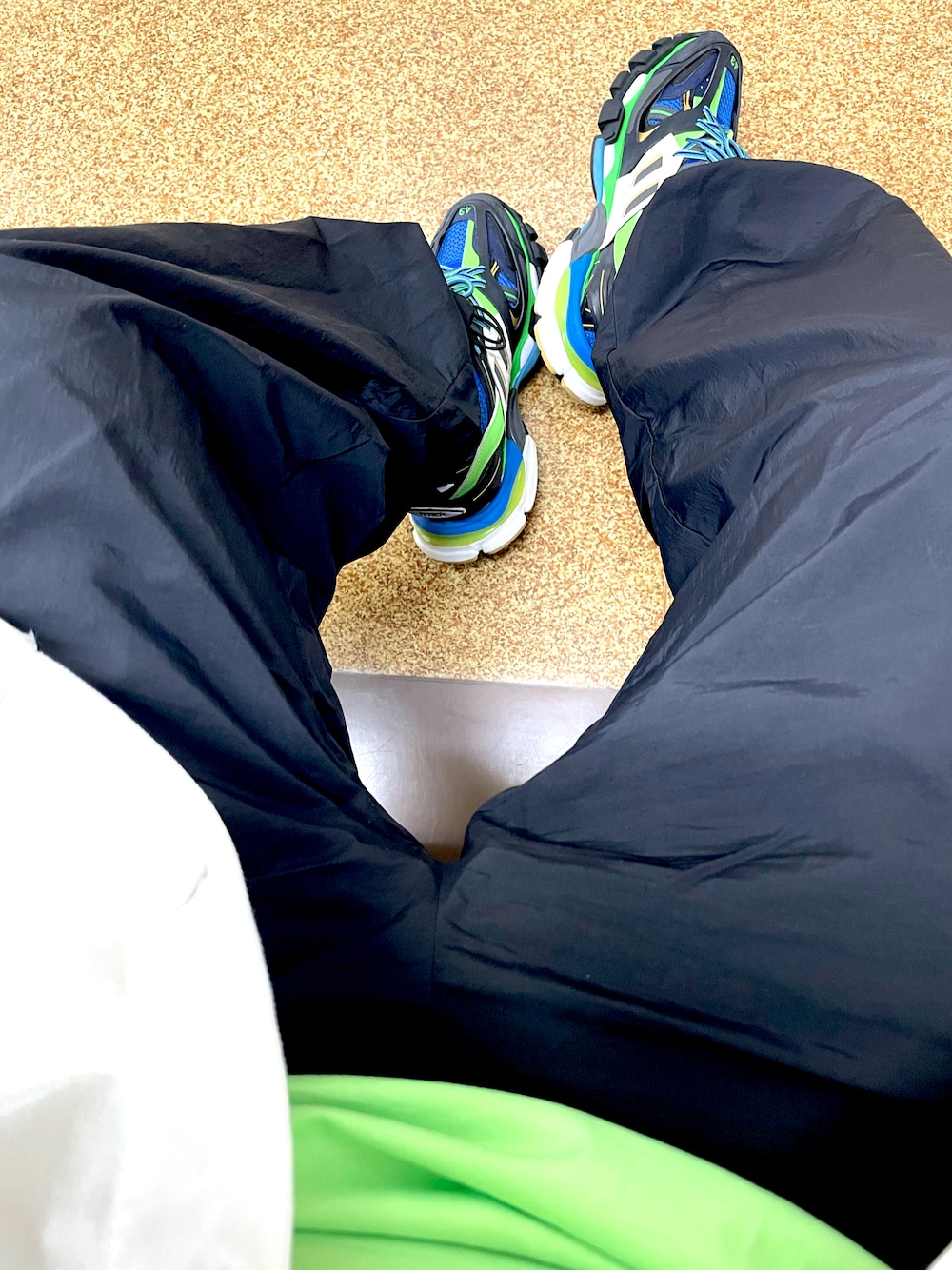 トラックにあわせて 蛍光グリーンStyle アディダスのワイドパンツを合わせて🩳