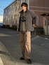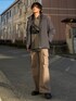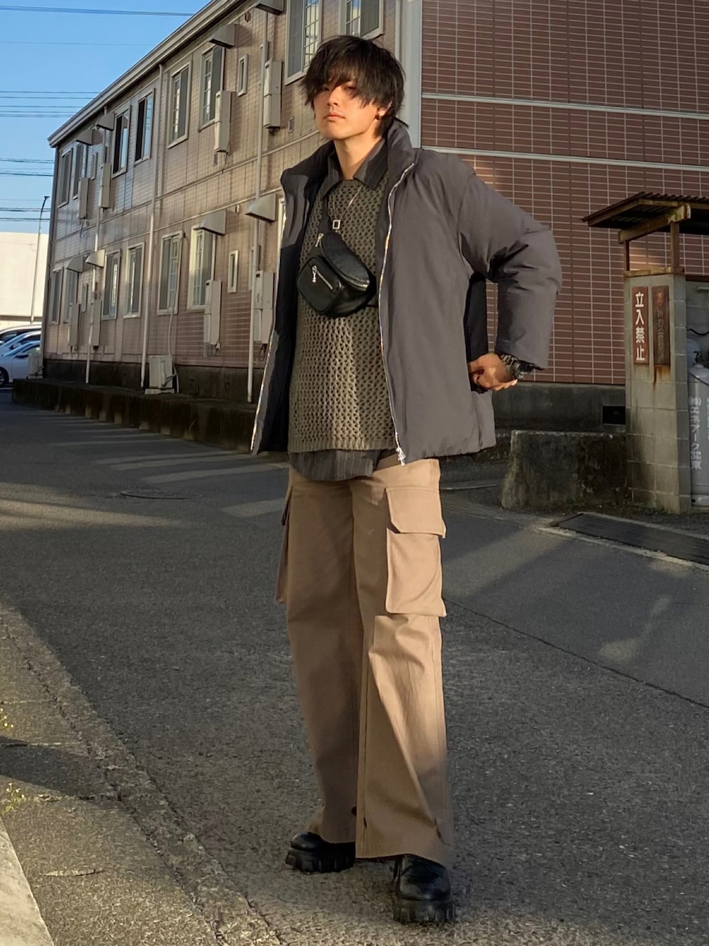 Charcoal Gray × Black × Brown Instagram.@ushio_wear 《ダウンジャケットとシースルーニットの淡色ストリートコーデ》