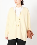深いVネックの開きが抜け感たっぷりのVネックニット。横長に開いたネックはデコルテをきれいに見せてくれます◎ スムースな平織りではなく表面感のある畔編みで仕立てました。 ややオーバーサイズで、程よく体から離れるリラックス感のあるシルエットなので、シャツやカットソー、ニットonニットなど、多彩なレイヤードスタイリングを楽しめそう! こちらのナチュラルカラーは黄味のあるクリーム色のような色合い。ピュアホワイトのカットソーと重ねて、トーンオントーンのコーディネートに。 Instagram:@hi___3232