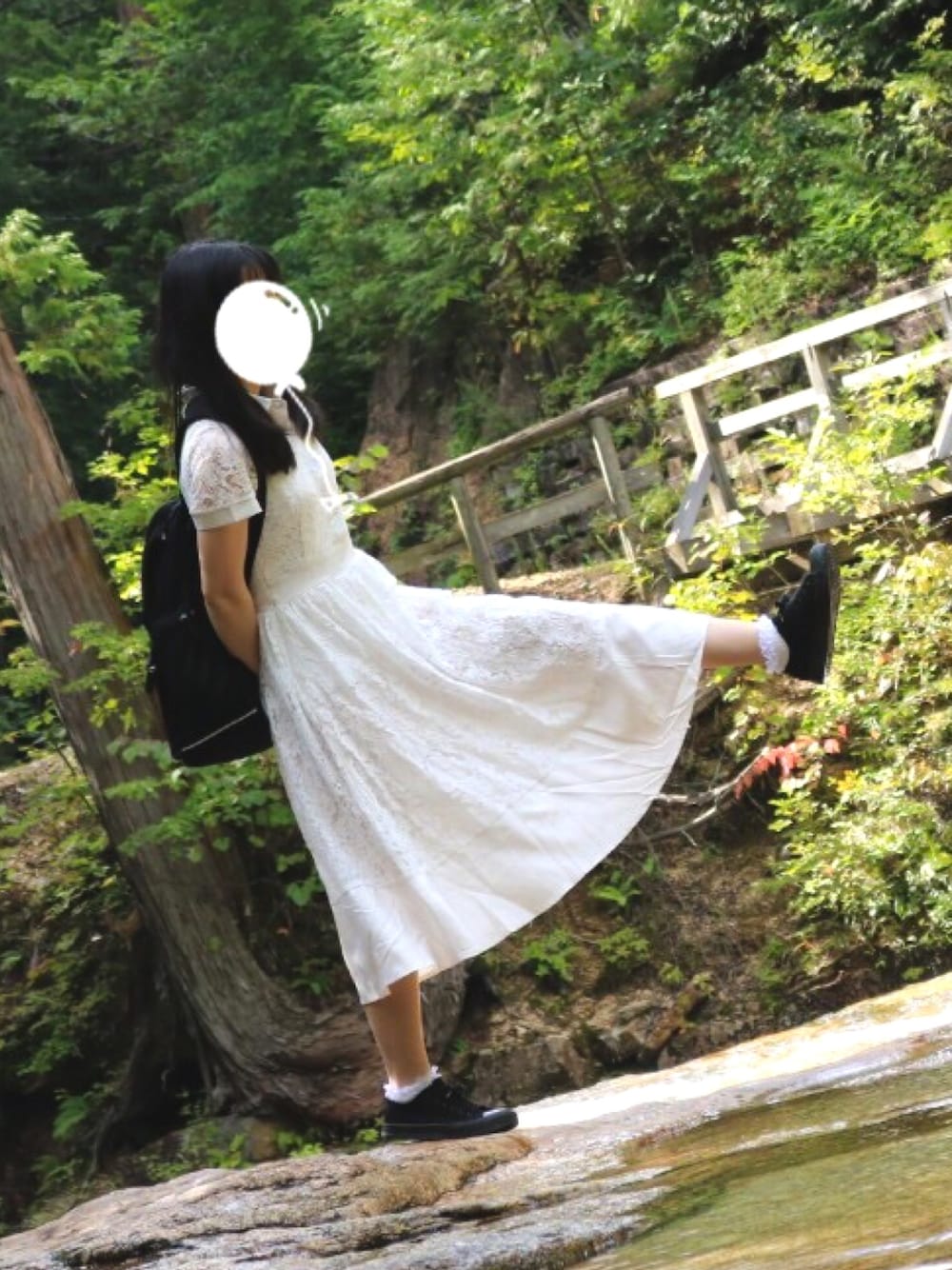 楽天で買ったお安いワンピースです! 森林浴をしに行ったのでグリーンに映えるよう真っ白の服にしました。