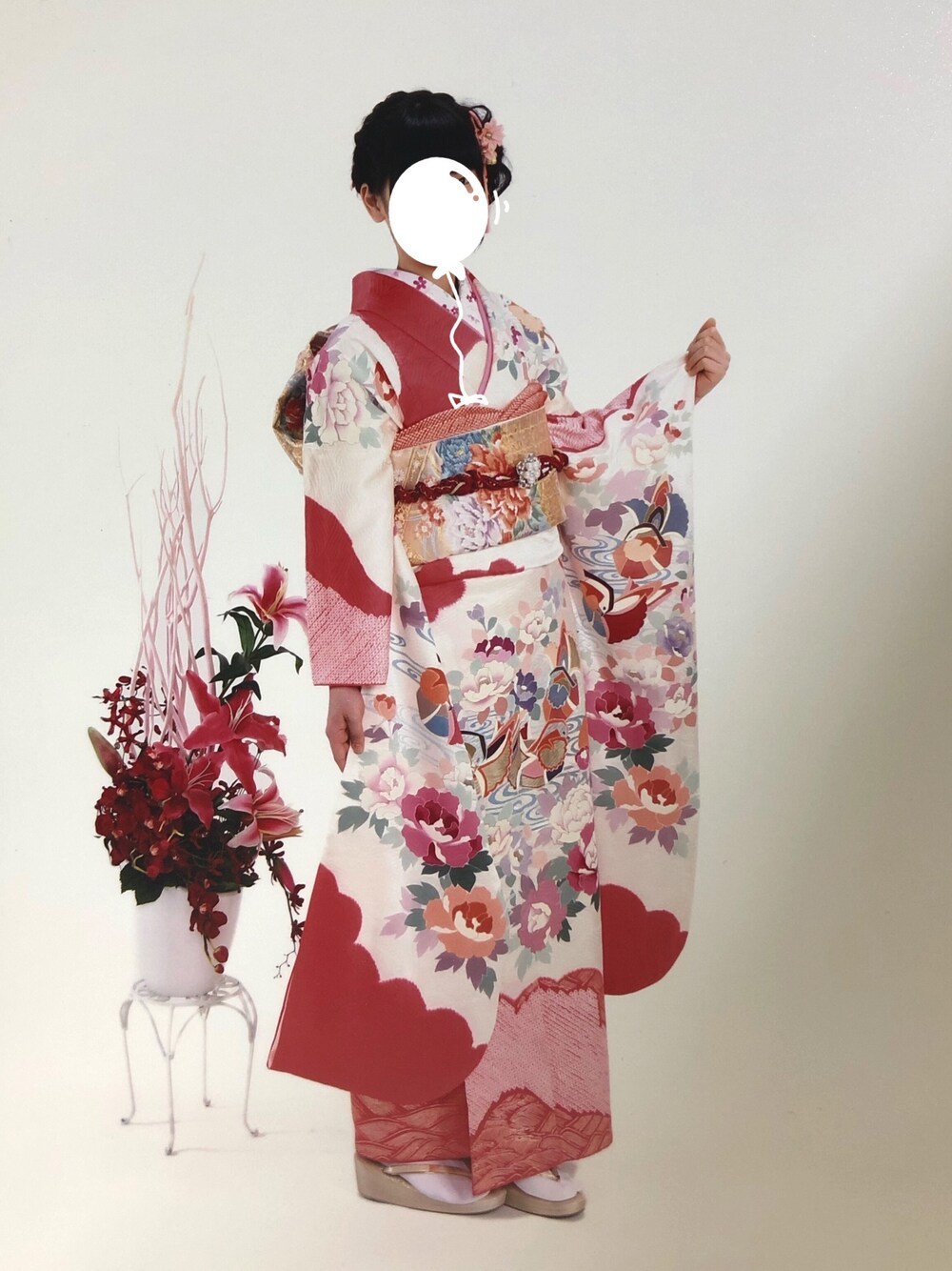 成人式の時に着た振袖です。 この振袖を着るのは母のお姉さんから3人目です。 金魚のような可愛い柄です。
