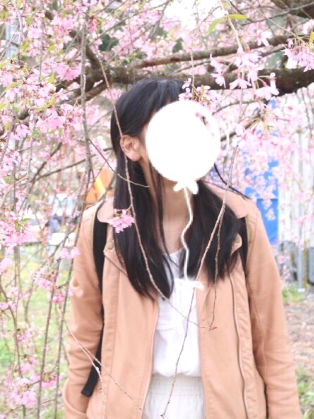 枝垂れ桜の色に合わせて ピンク色のライダースジャケット 中は白で春らしく🌸