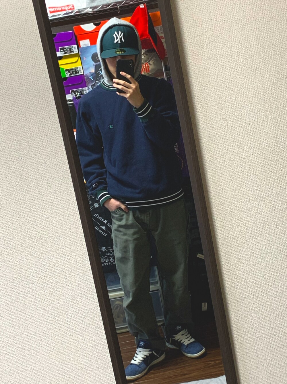 SBダンクのシューレースは結ばない派 中に薄いフーディー重ね着