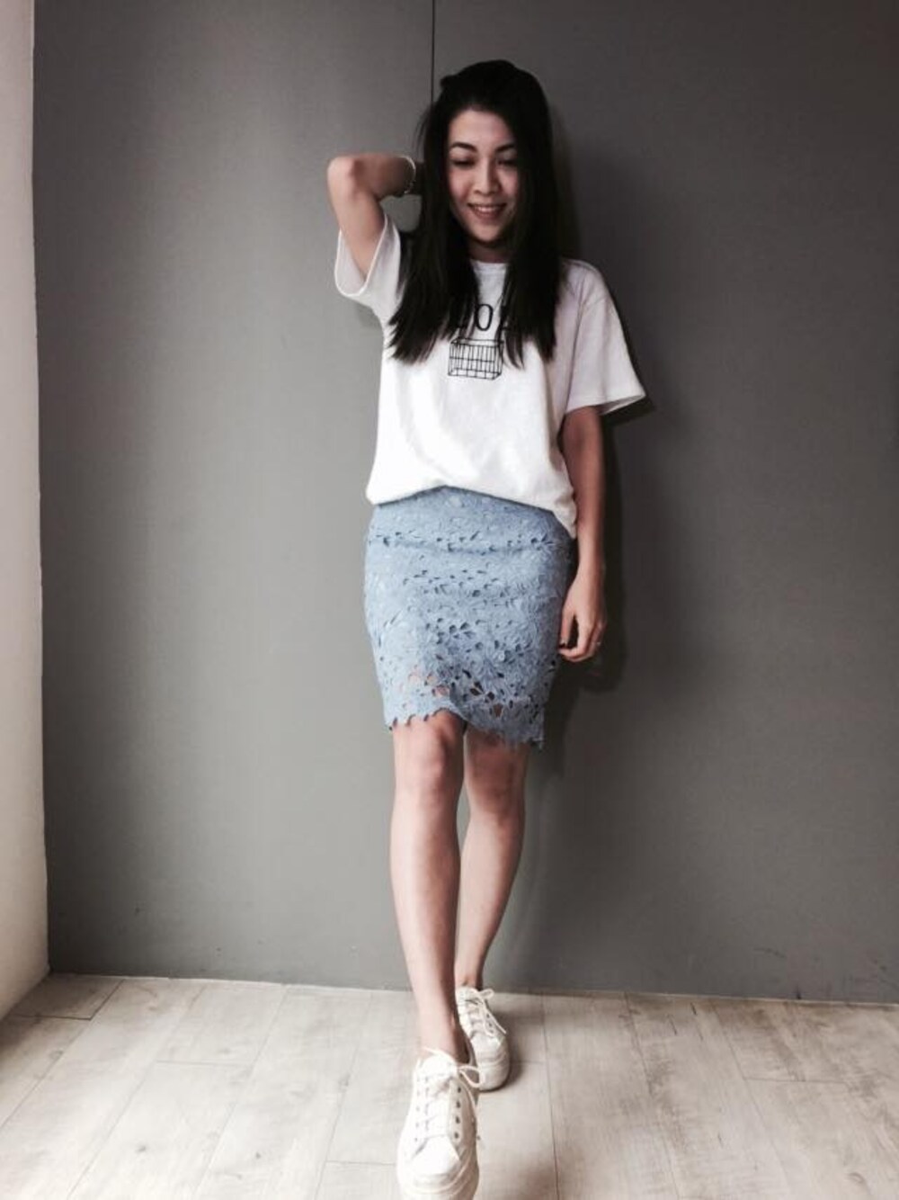 ustyleのスカート「❙ USTYLE SHOP ❙ 整件花朵蕾絲窄短裙」を使ったコーディネート