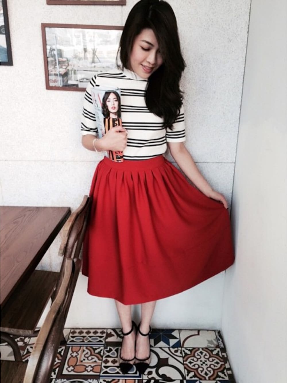 總是要來點女人味,讓對方看了臉紅心跳。 【3色】質感顯瘦條文圓領上衣 http://bit.ly/1MDW3IN 【2色】歐美法式風尚雪紡圓裙 http://bit.ly/1DqoNTK